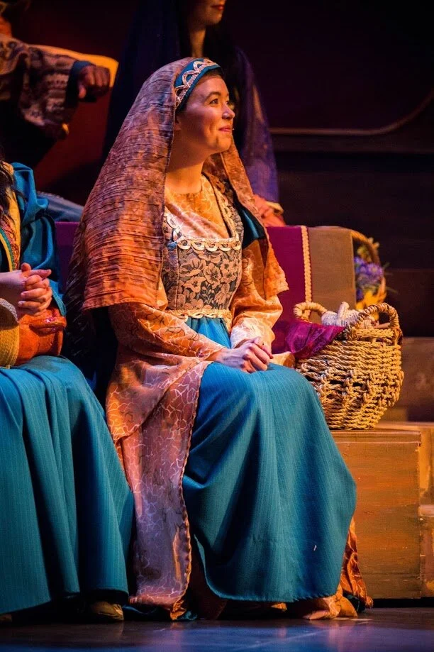 I smiled. What a place to be. I also giggled at myself for how close I was cutting it to get in place. I remembered back to opening night of Jonah when I was ready to go a good ten minutes before the places call. This time I hadn’t even arrived in my dressing room until 5 minutes before the show began. But I had no trouble putting on my mic and costume and wig, retrieving my prop and moving to my opening blocking place on the massive, 100-foot stage. A lot has changed, I thought amusedly. As the scrim rose and the music played the opening of my final show, I took a deep breath and cherished the moment.